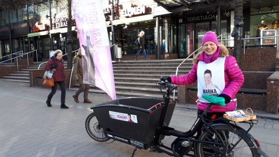 Marika Visakorpi vaihtelee kulkupelejä vaalikampanjassaan Keski-Suomessa – ”Biokaasua ja polkuvoimaa”