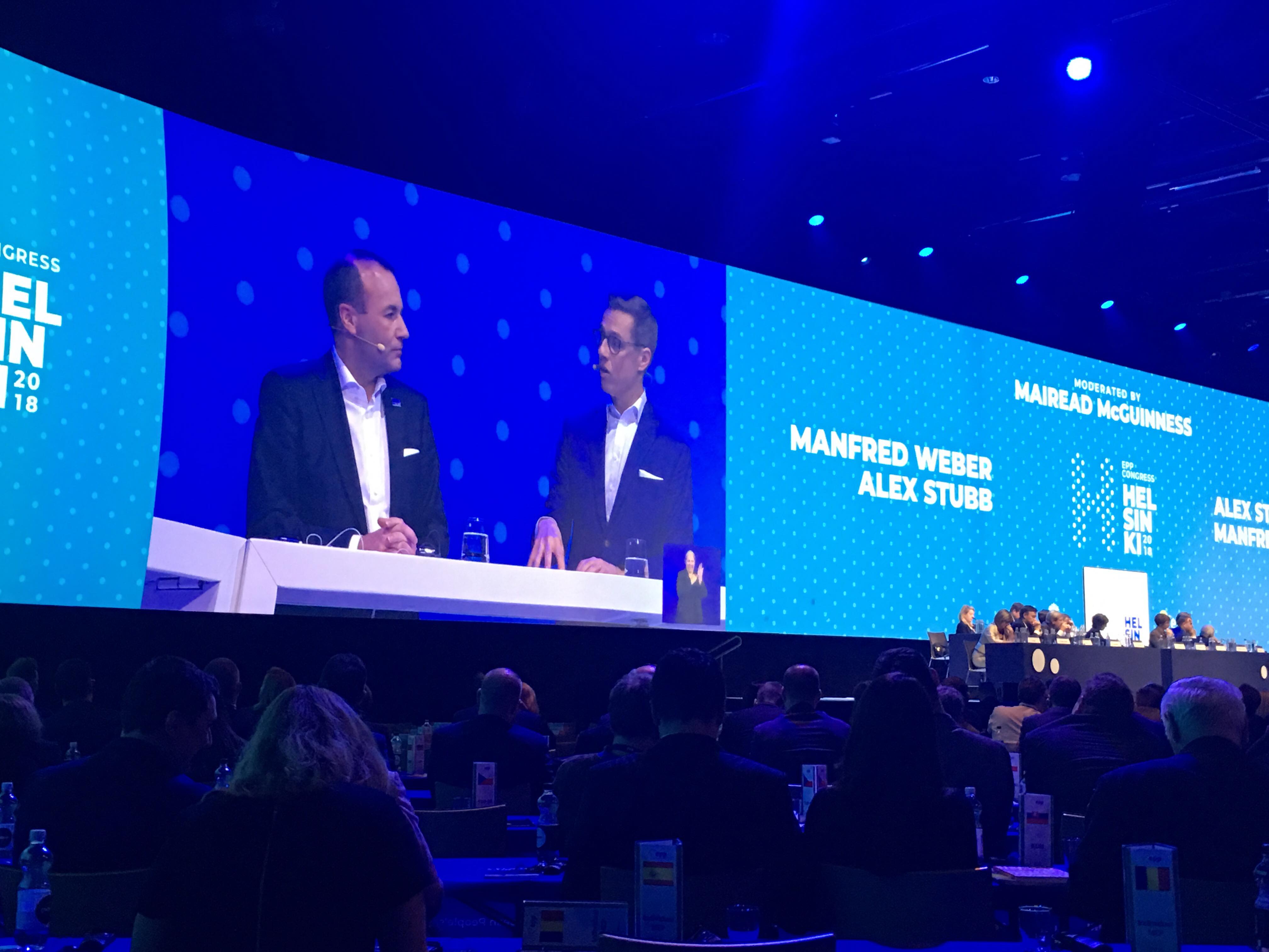 EPP:n puoluekokouksen ensimmäinen päivä huipentui Weberin ja Stubbin kohtaamiseen
