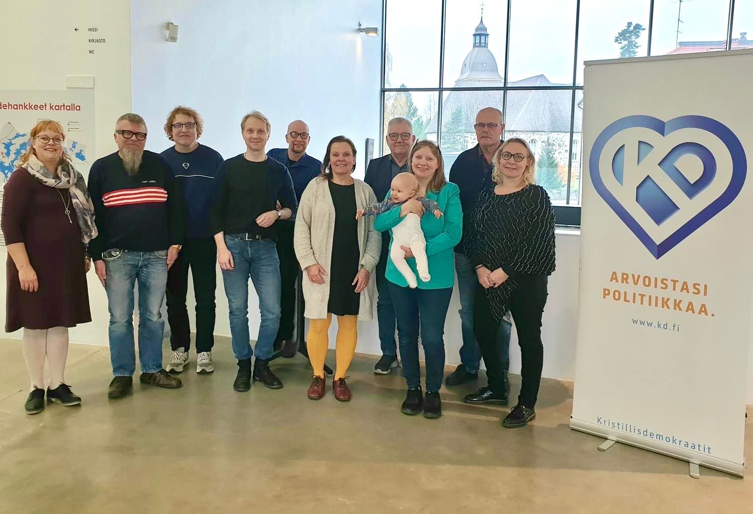 Kymmenen juuri nimettyä aluevaaliehdokasta osallistui Pirkanmaan KD:n syyskokoukseen Kangasalla lauantaina 26. lokakuuta. (Kuvat KD Pirkanmaa)