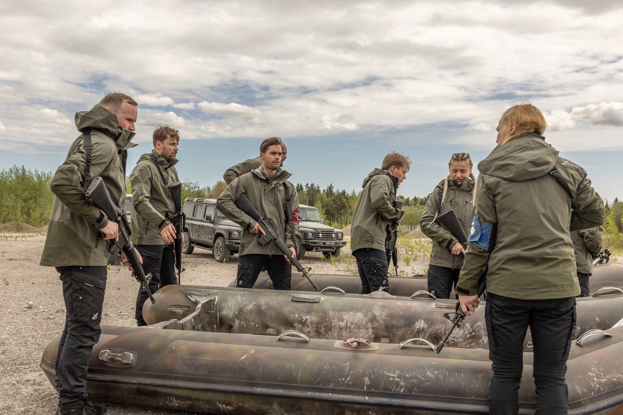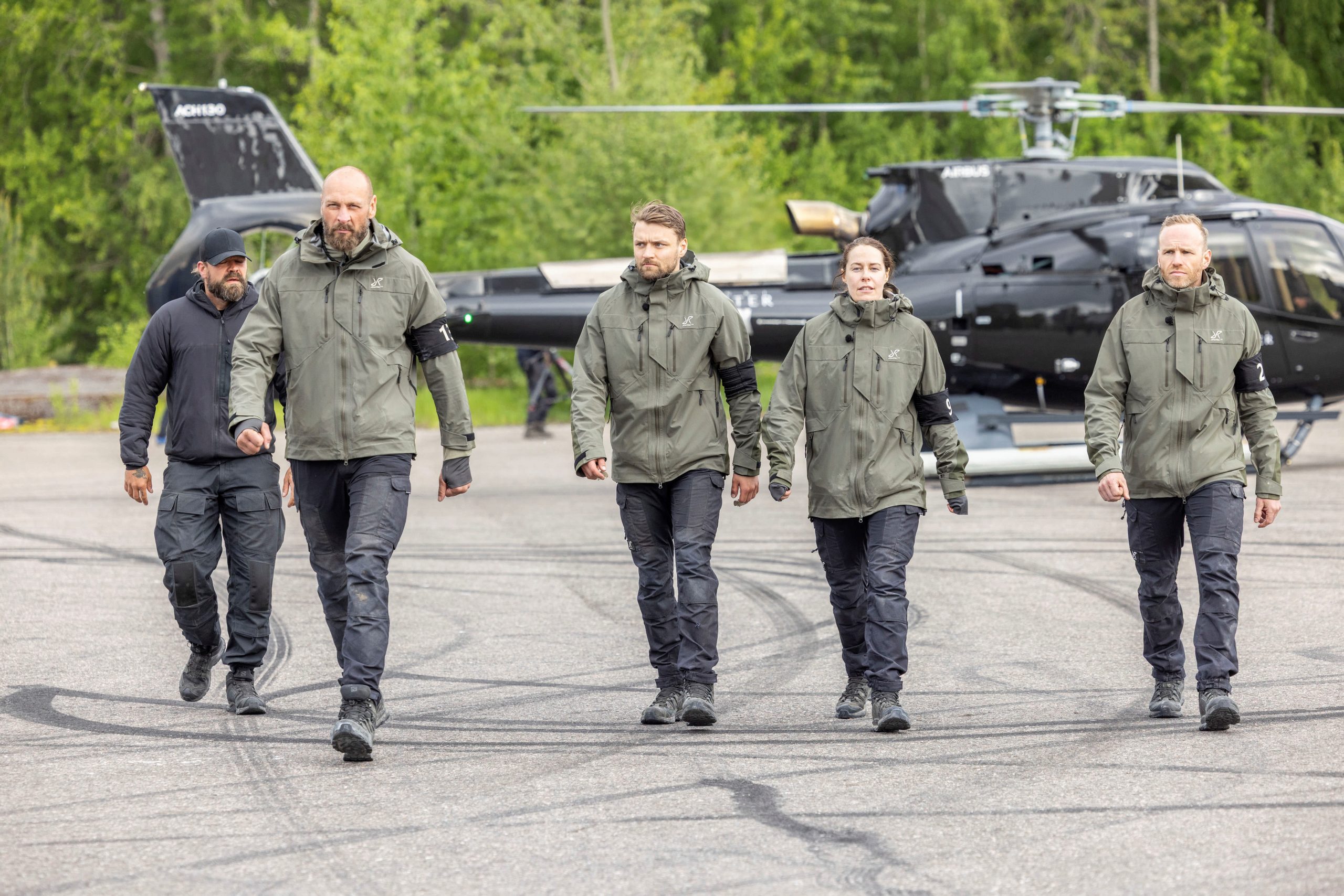 Päätösjakson viimeiseen tehtävään saakka oli selviytynyt puolitoista viikkoa aiemmin aloittaneista 16 kokelaasta vain neljä. Kuvassa vasemmalta kouluttaja Janne Lehtonen, ex-nyrkkeilijä Robert Helenius, salibandyn maailmanmestari ja maajoukkueen kapteeni Nico Salo, urheilutoimittaja Noora Toivo ja ministeri Mika Poutala. Kuva: Jere Hietala, Sanoma