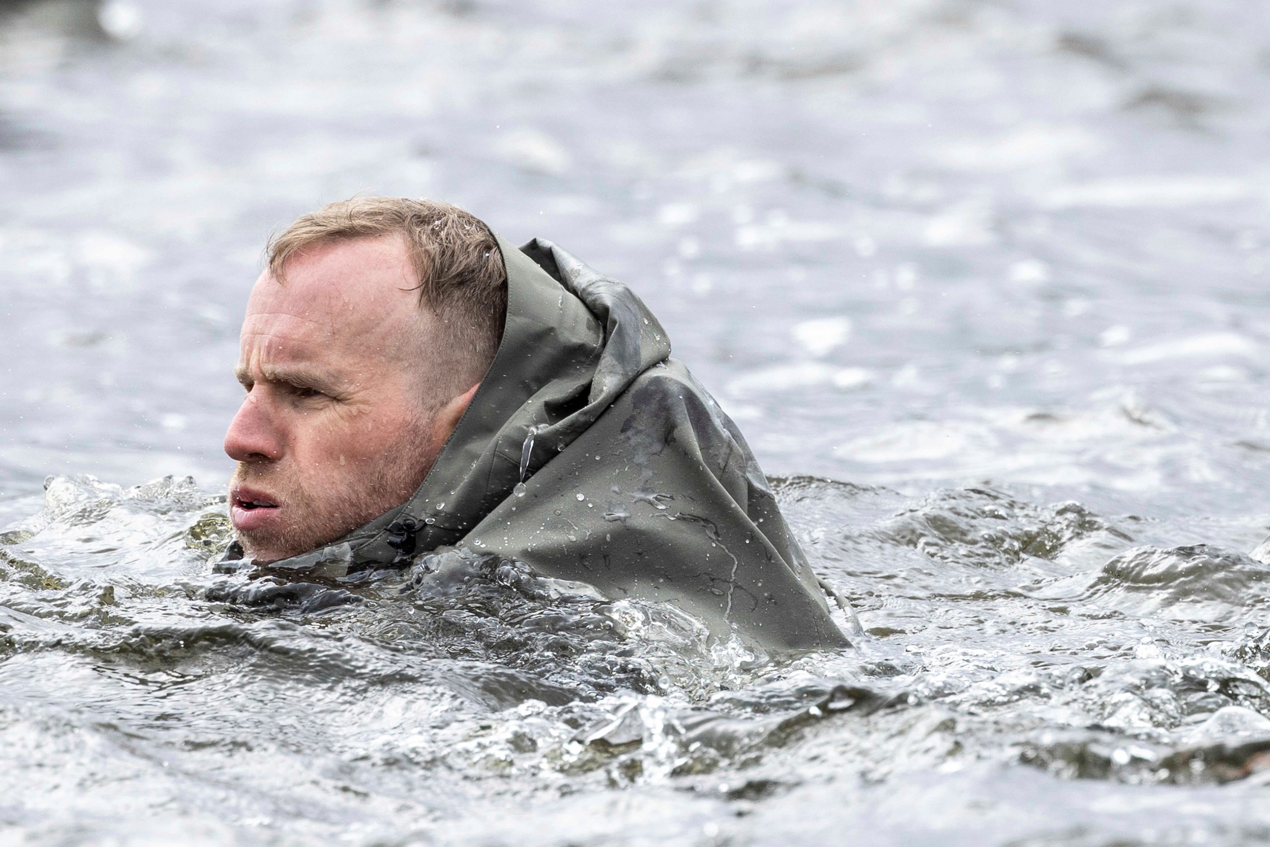 Erikoisjoukkojen kokelaat joutuvat useita kertoja raskaisiin suorituksiin kylmissä vesissä jopa hypotermian rajoille. Kuva: Jere Hietala, Sanoma