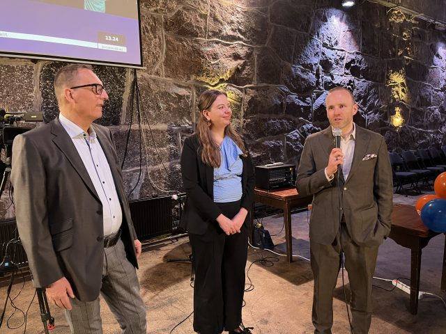 Ari Mönttinen ja KD:n Uudenmaan kansanedustaja ja tuleva ministeri Mika Poutala oli vaali-iltana Ajatushautomo kompassin ja KD Svenskan puheenjohtajan Annika Lyytikäisen haastateltavana. (Kuva: Samuli Rissanen)