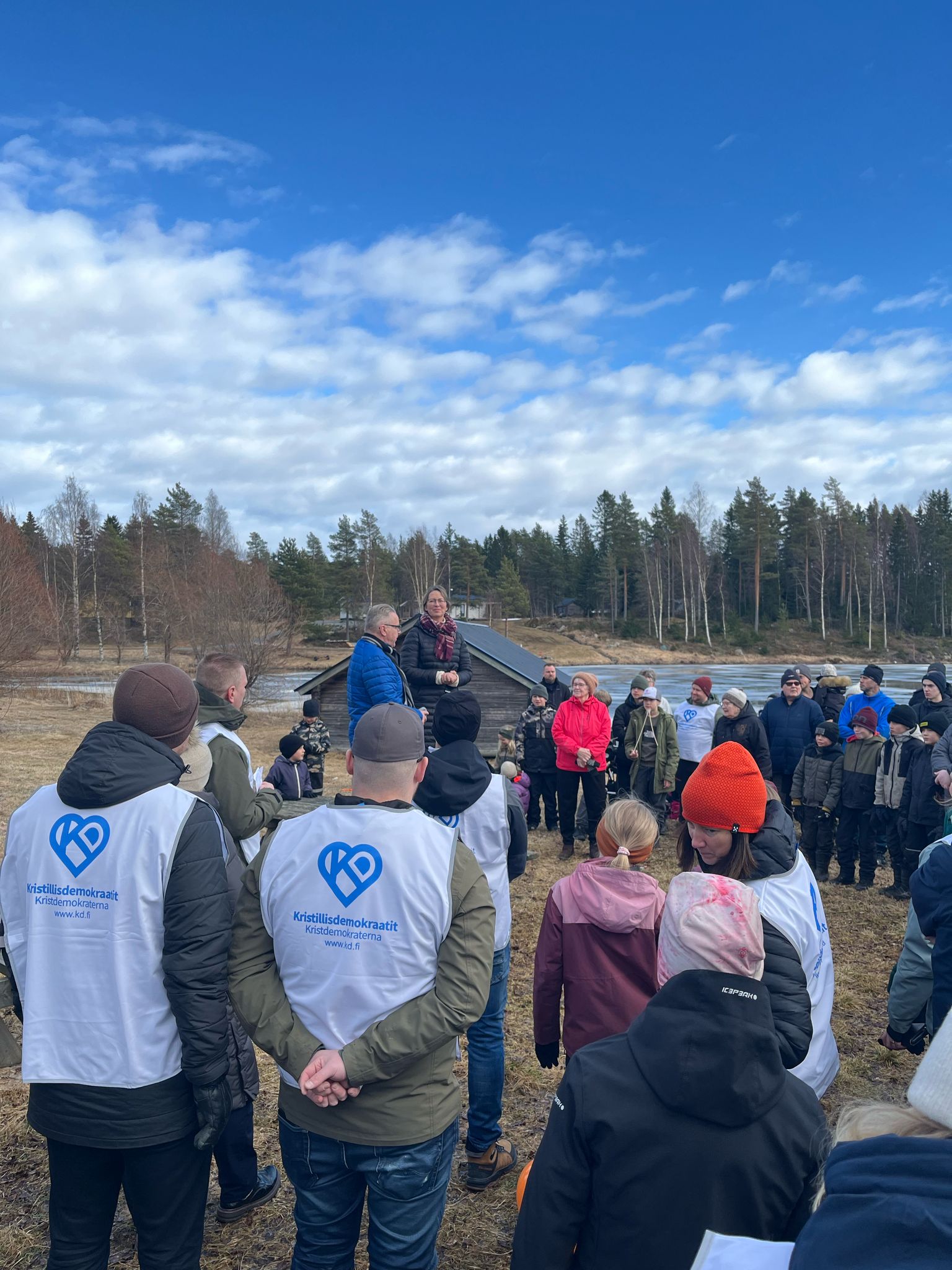Puhujina Luodon oma poika, kansanedustaja ja kuntavaaleissa numerolla 70 jatkokaudelle valtuutettuna pyrkivä eduskuntaryhmän puheenjohtaja Peter Östman sekä Lapinlahdella (numero 46) ja Pohjois-Savossa (2285) jatkokausille pyrkivä KD:n puheenjohtaja Sari Essayah. (Kuva Roope Knapp)