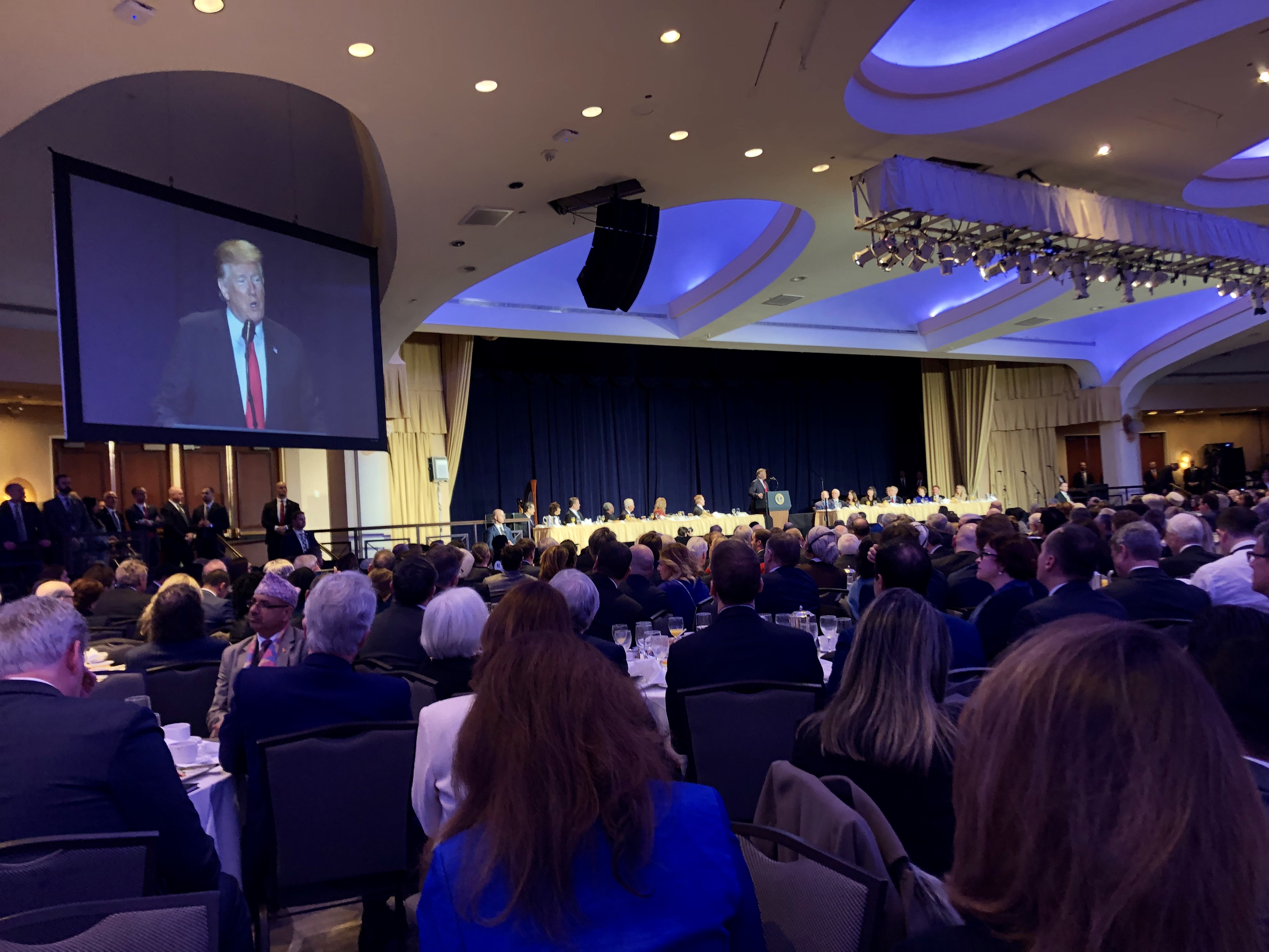 Yhdysvaltain presidentit ovat olleet kansallisen rukousaamiaisen kutsuvieraspuhujia tapahtuman alusta lähtien 1950-luvulta. – Presidentti Donald Trump puolusti tämänkertaisessa puheessaan voimakkaasti elämää, kertoo kansanedustaja Antero Laukkanen. (Kuva Antero Laukkanen)